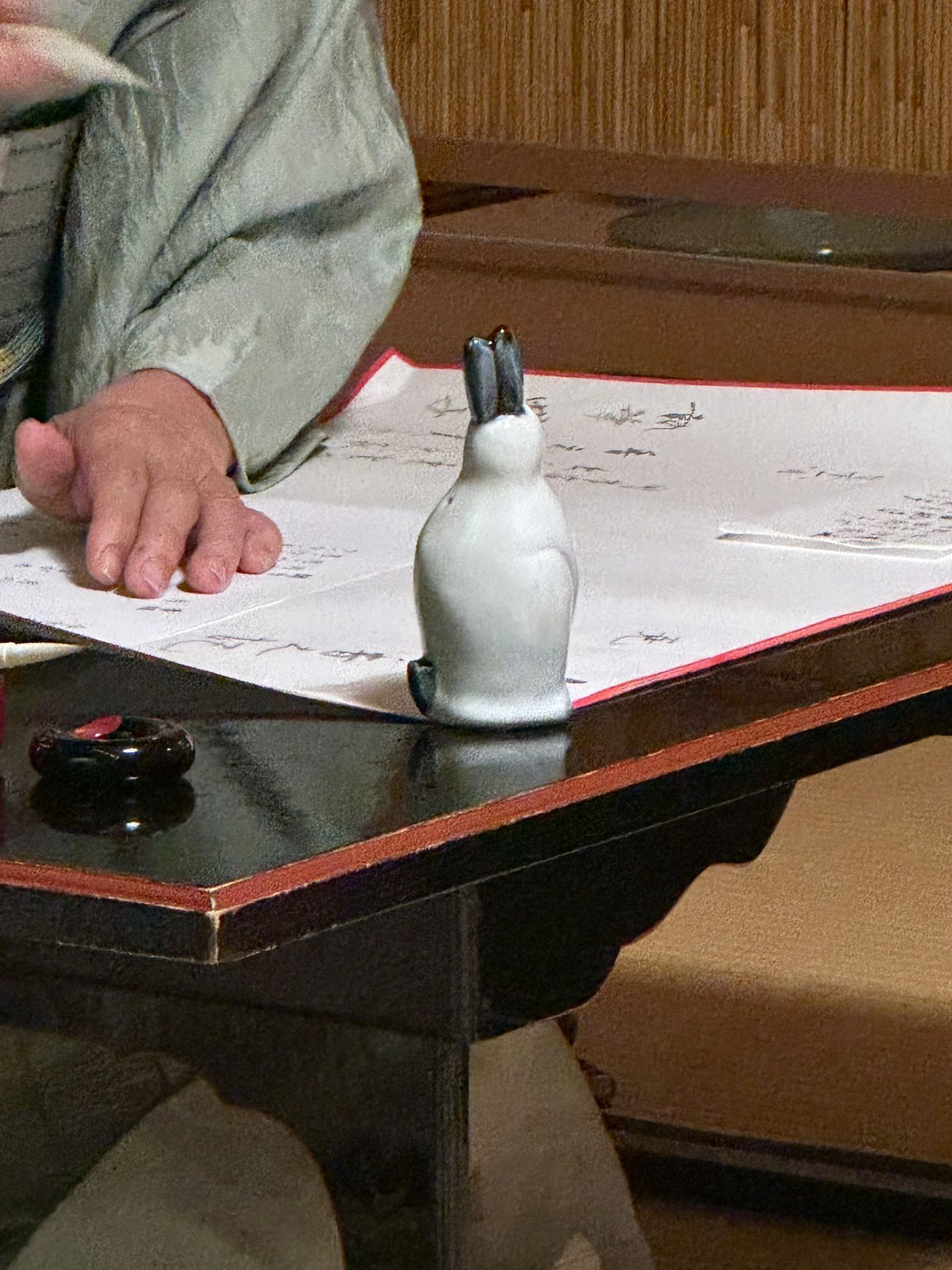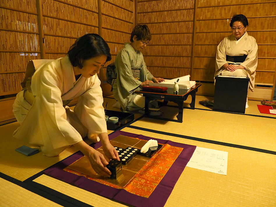優美なお点前で、香元から出された香炉を手に、ひとりずつゆっくりと、添えた手の隙間から香りを聞いて、次の方に回していきます。