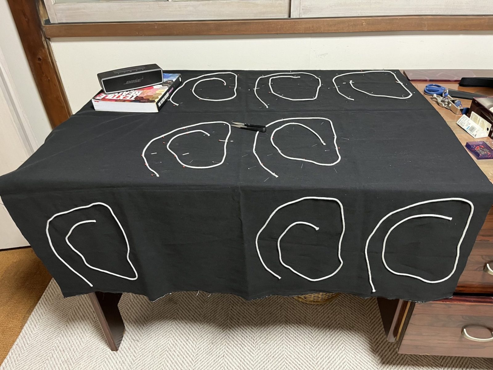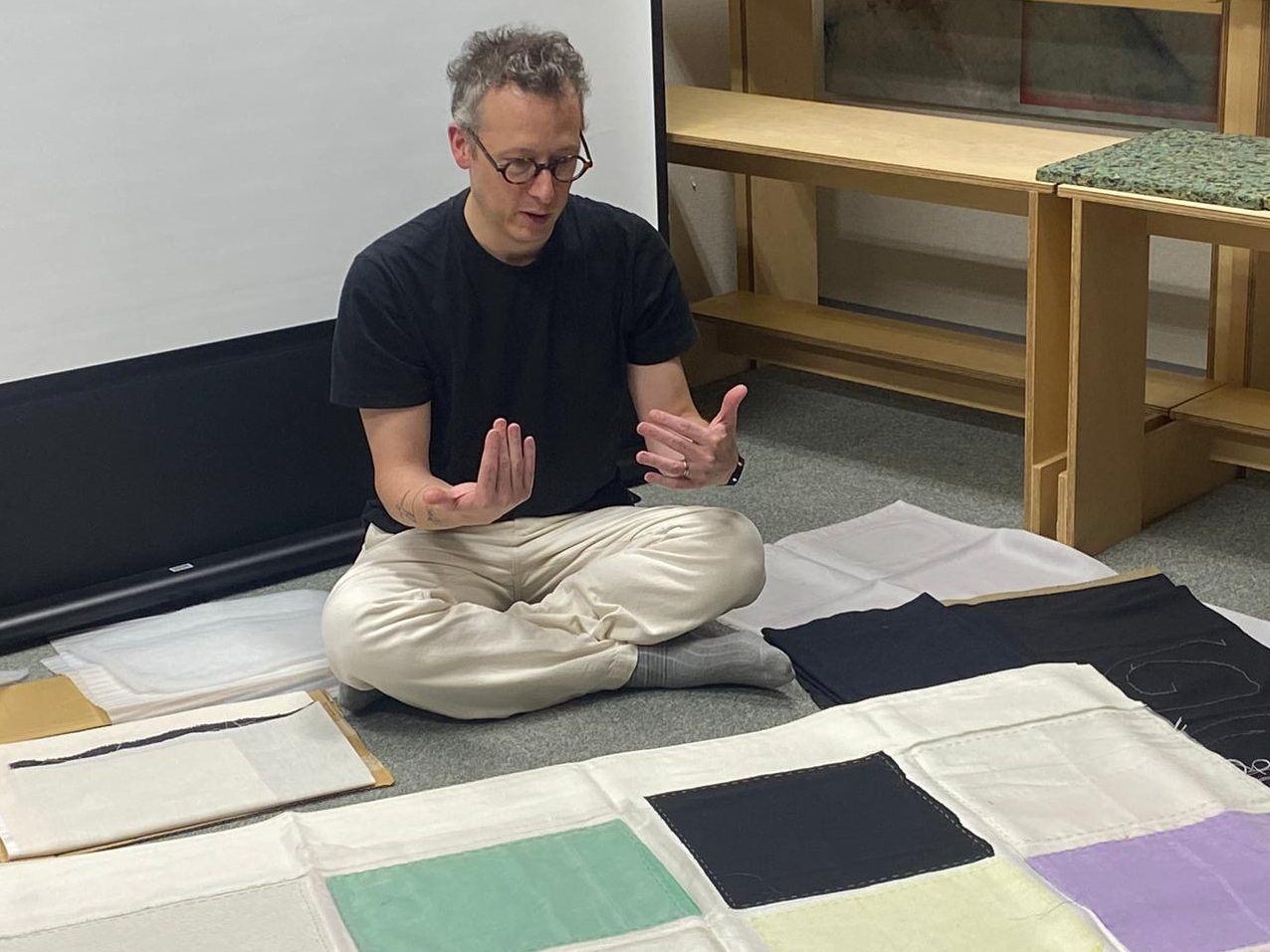 レジデンシーの最後には、AITでアーティスト・トークとディスプレイ・パフォーマンスを行い、滞在中に制作したテキスタイル作品を広げて紹介しました。床に広げた作品を中心に親密な空間がつくり出され、ひらかれた儀式的な行為を通じて、鑑賞者は作品をさまざまな角度から観察し、細部を間近に見ることができました。これは、私が初めて行ったパフォーマティヴな展示であり、作品が時間、空間、そして観客とどのように相互作用するかという視点に新しい次元をもたらしました。