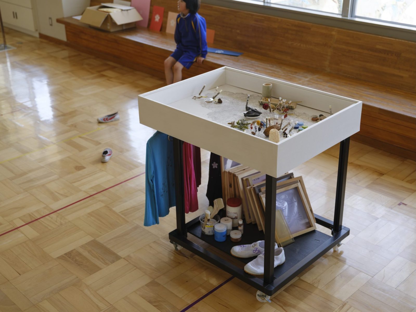 これまで一貫して、身の回りの環境に目を向けて「小さくつくる」ことを続けてきた三原さん。その結果、作品に必要な機器も小さくまとまることになり、輸送も基本的にはハンドキャリーで間に合うようになったといいます。時折必要になる大きな素材などは、展覧会場周辺で調達したり、廃棄物をアップサイクルとして活用することもあるそう。