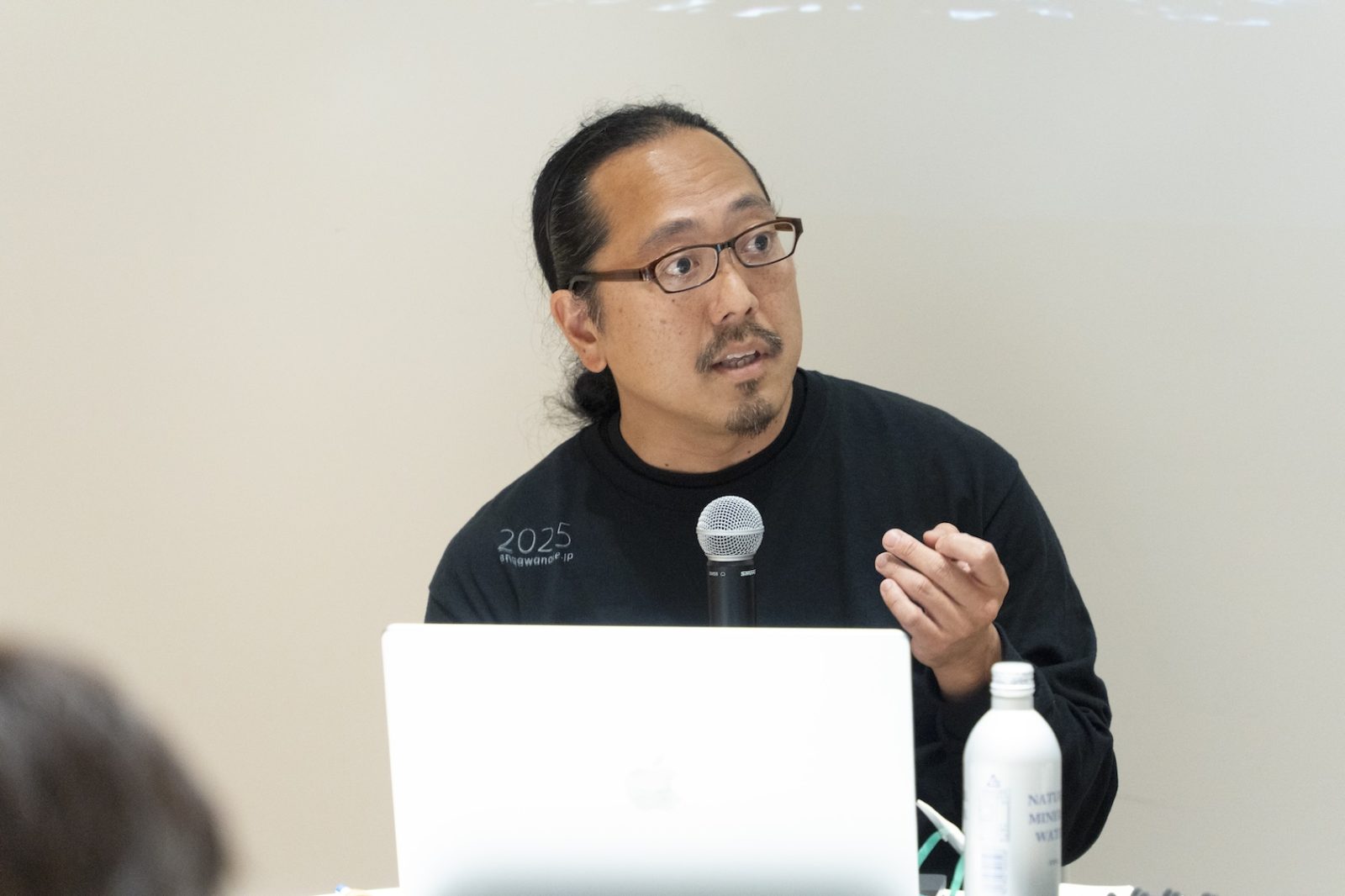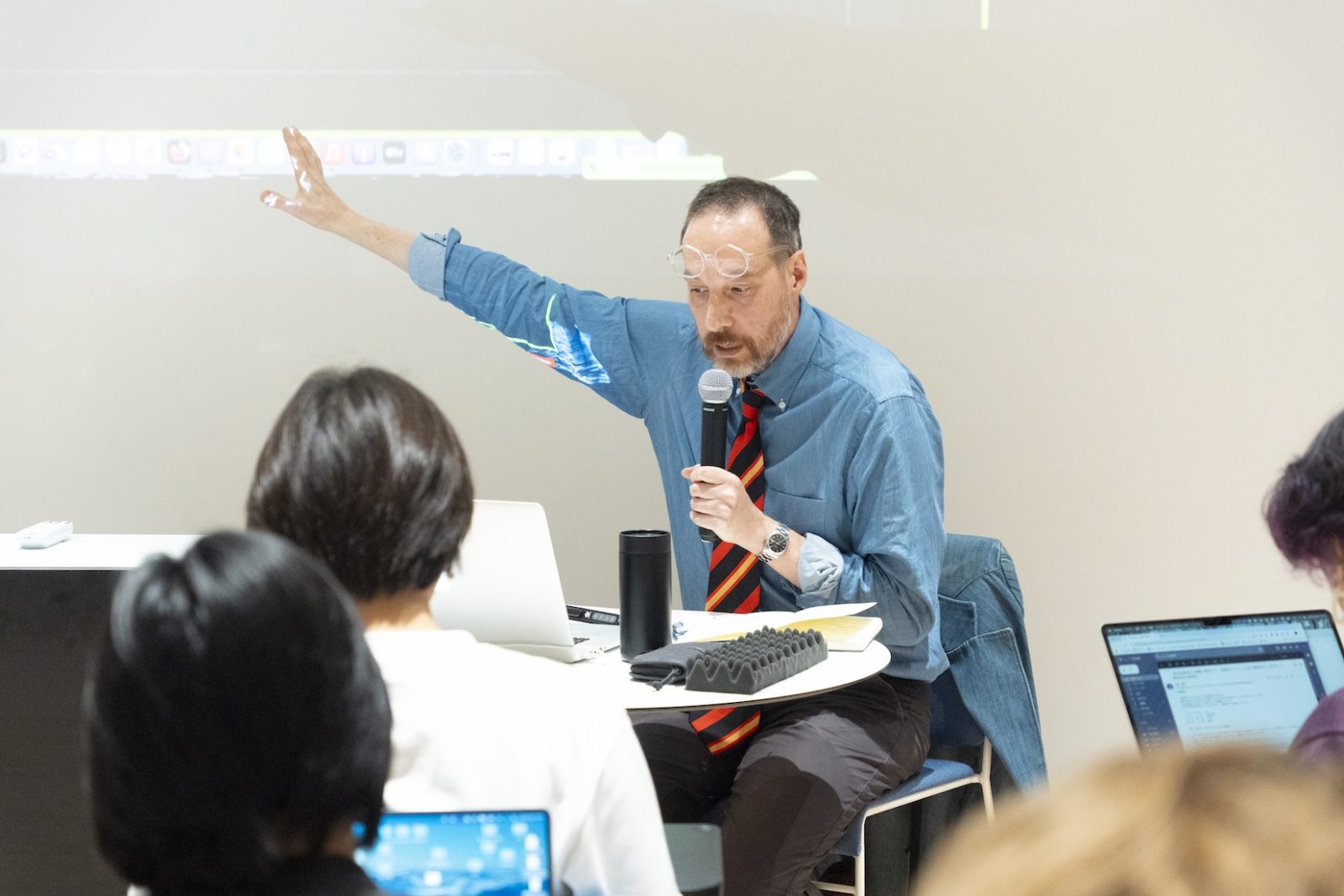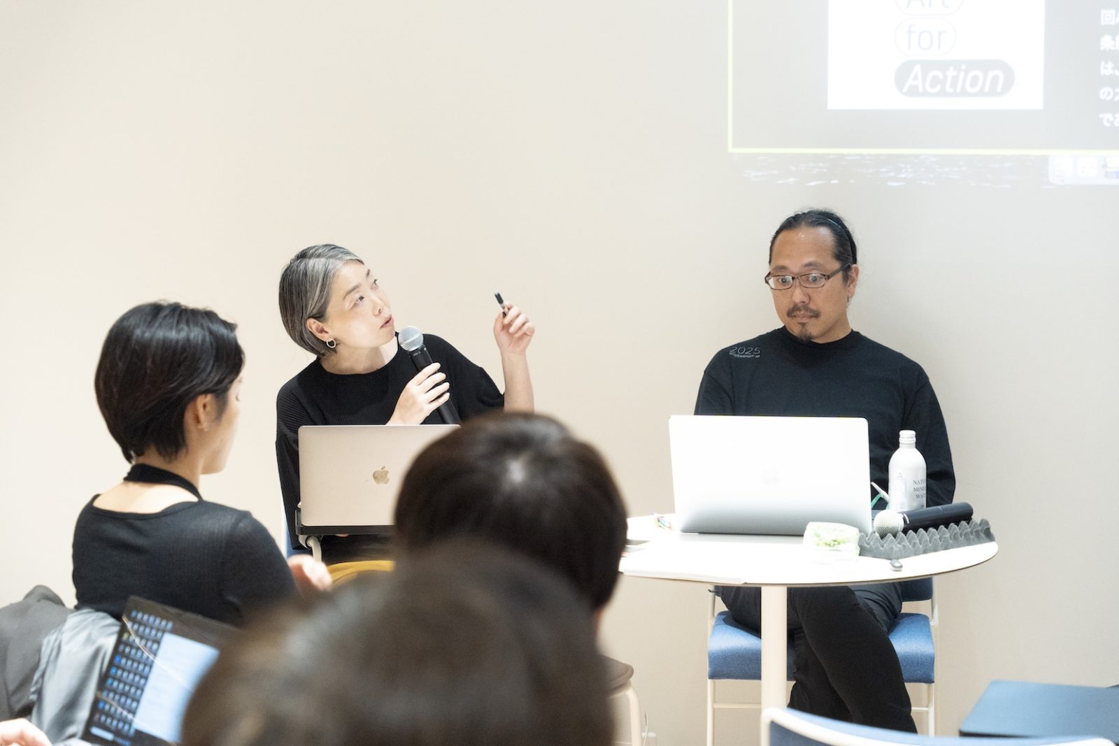 まずイベントは、AITがなぜ気候危機とアートというテーマに取り組むのか、その背景についての解説からスタート。これまでの流れを振り返りながら、ACCJ(Art Climate Collective Japan)を立ち上げた経緯と意義をロジャーが語ります(これまでの取り組みについては、ぜひ過去の記事をご覧ください)。