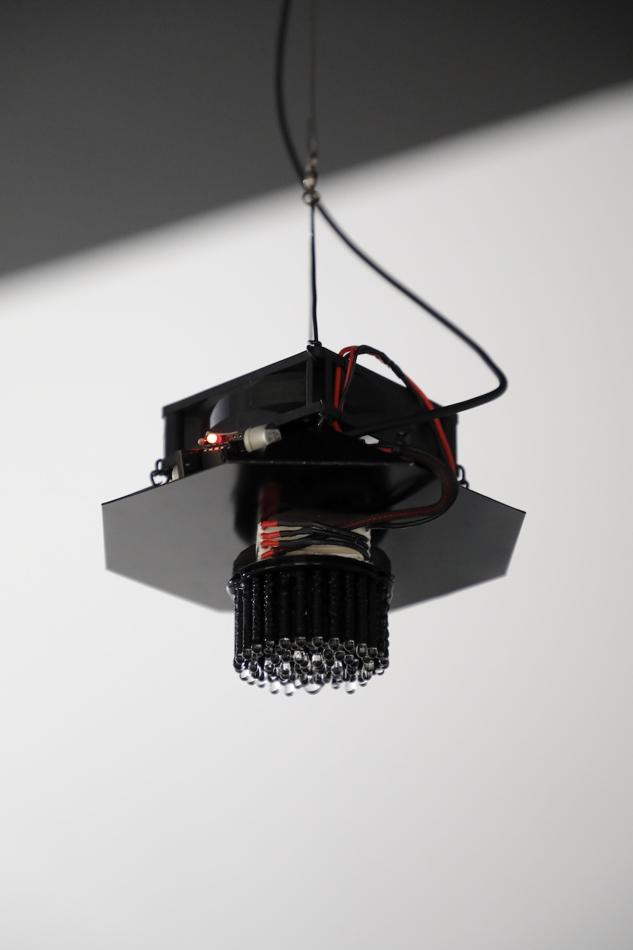これまでの作品に共通するのは、テクノロジーを活用して周囲の環境情報を取り入れるというアプローチ。活動初期はおもにマイクで環境音を取得し、システムを構築するメディアアート作品を制作。次第にマイクをほかのセンサーに変えることで異なる環境情報を取得できると考えたことから、音以外の現象へと関心が移っていったそう。
