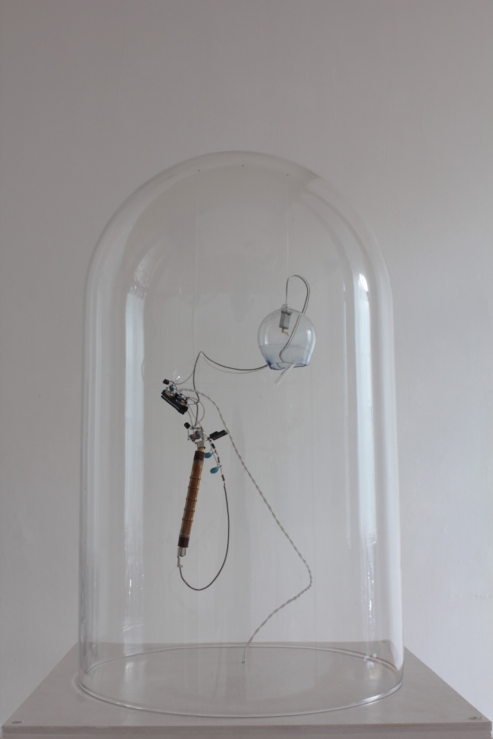 その後に着手した作品「空白のプロジェクト」では、インスタレーションを4つのバリエーションで展開。震災に象徴される日本社会の空虚な印象を「つかめそうでつかめない」感覚として泡で可視化させた作品、環境放射線をリアルタイムでセンシングする作品、エネルギーロスのない微生物燃料電池をプロトタイピングした作品、人間以外の種とのコミュニケーションを試みるバードコールを模した作品を制作しました。