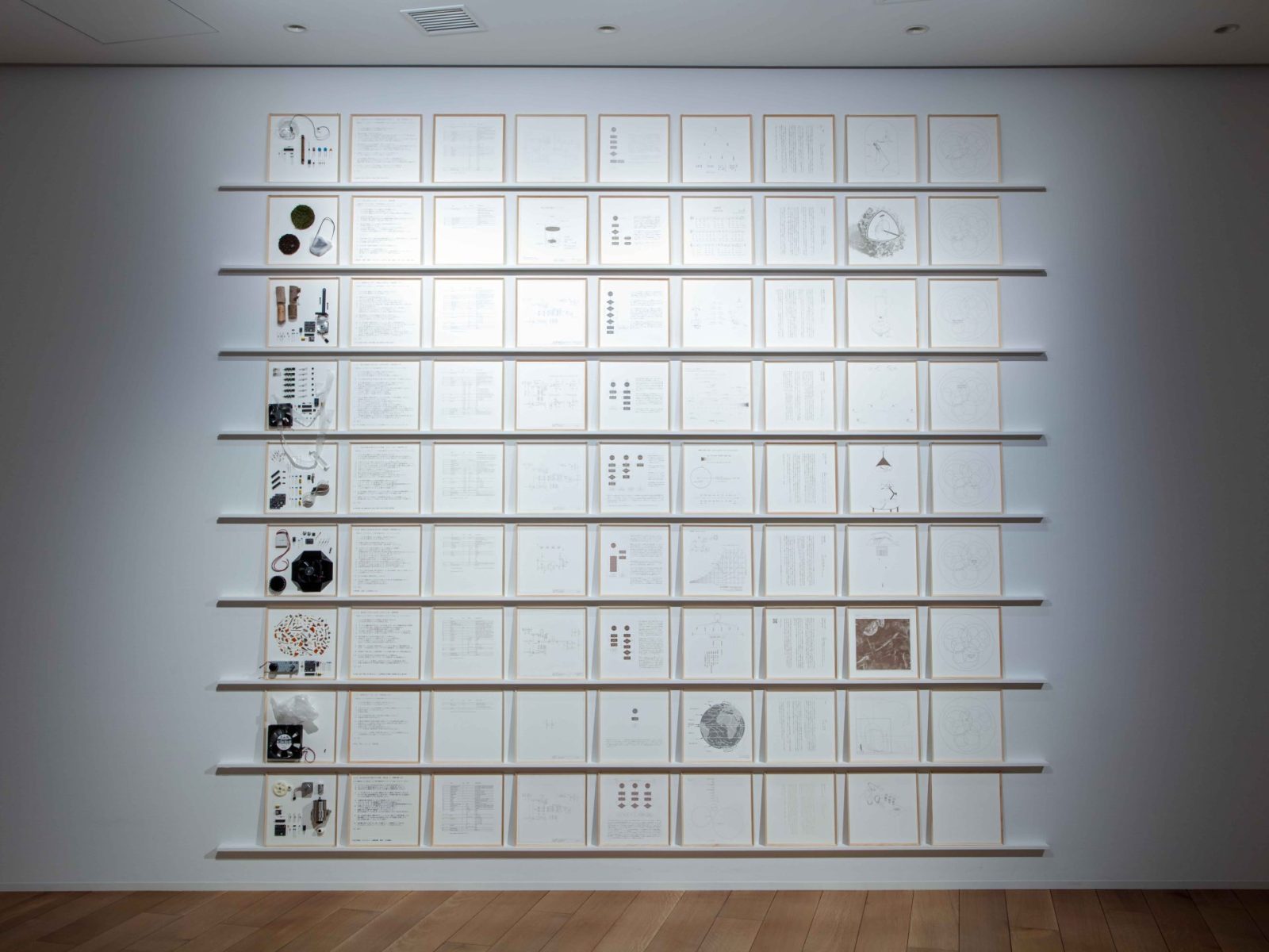 〈レシピ〉は作品の概要、扱われた自然現象のリサーチ、システム構成、ハードウェア、パーツリストといった情報から成り、料理のレシピのように番号を追って実際に再現し制作できる形式を採用。この〈レシピ〉11点を展示しました。