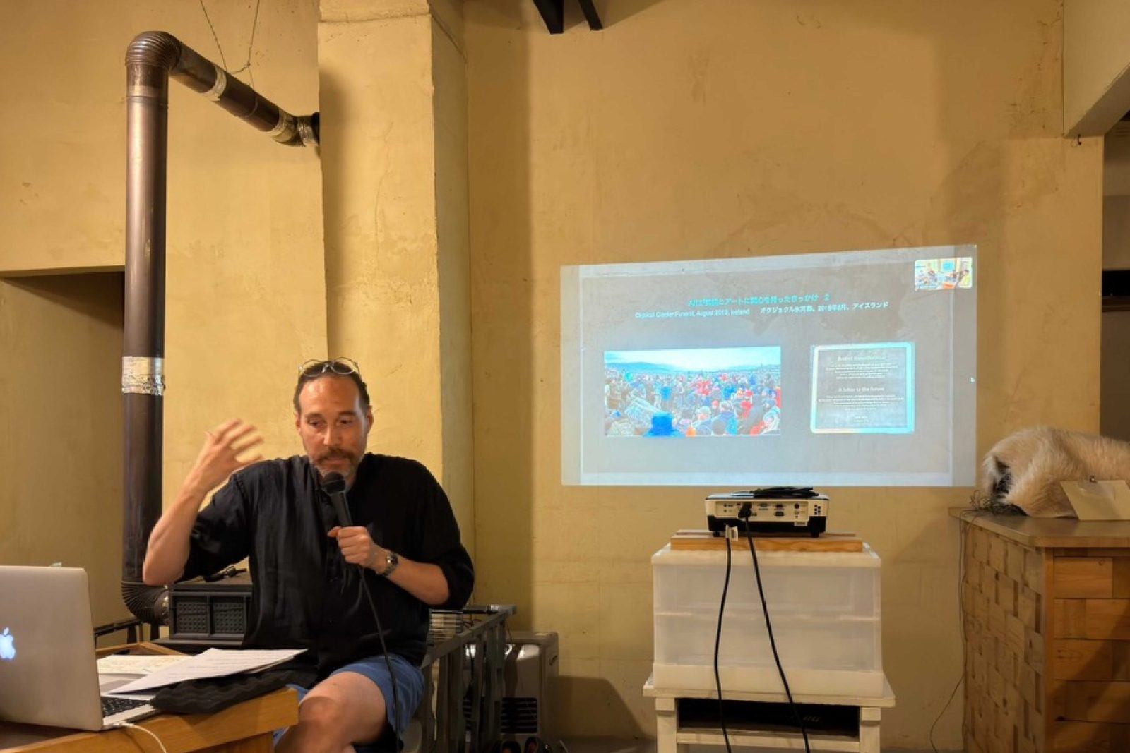 ひとつは2019年、AITのアーティスト・イン・レジデンス(AIR)に招聘されたスウェーデンのアーティスト、アーロン・ランダールが、ヨーロッパからシベリアを経由して陸路とフェリーで来日した出来事。これはAIRの歴史で初めての事例であり、彼の行動や、環境負荷の少ない移動手段を選ぶアーティストに支援を行う文化機関の姿勢から、気候危機とアートの関係について強い示唆を得た。同じ年に報じられた、アイスランドで完全に消失した氷河の「国葬」のニュースも、自然環境の変化にどう向き合うかを考える契機となった。